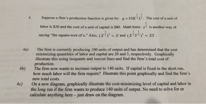 Solved Suppose A Firm S Production Function Is Given By Q Chegg Com