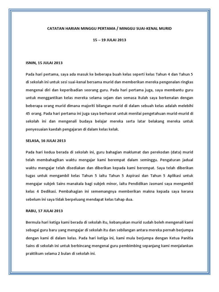 Catatan Harian Minggu Pertama Pdf