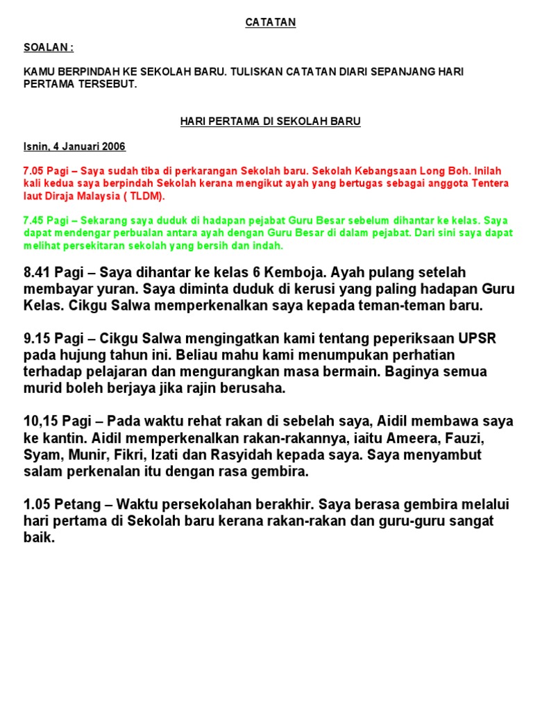 Catatan Pengalaman Pada Hari Pertama Persekolahan Pdf